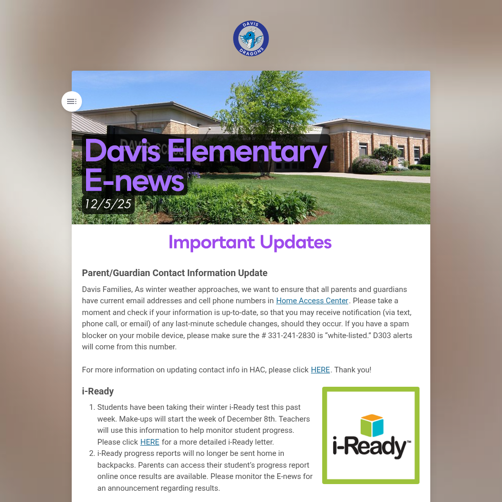 Learn more about the D303 cell phone procedures, effective August 13, 2025 (the first day of the 2025-2026 school year).